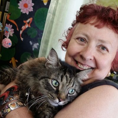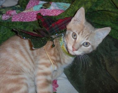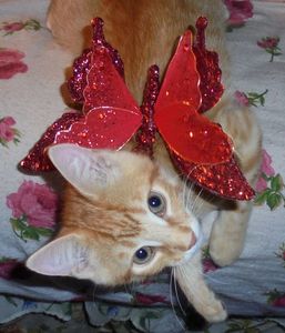 Yael began her life as a throwaway kitty. She arrived covered in ticks, starved, with many, many behavioral issues. Today she is adored and pampered. She's always up for an adventure. Yael just recently visited the VA in Brockton, rocking her moth wings of course!!!